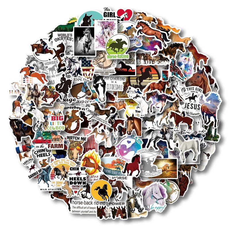 AOWDIAO 100 Pieces Horse Stickers, Horse Riding Stickers Pack for Water Bottle, Laptop, Car, Luggage, Horse Gifts for Girls Women Kids