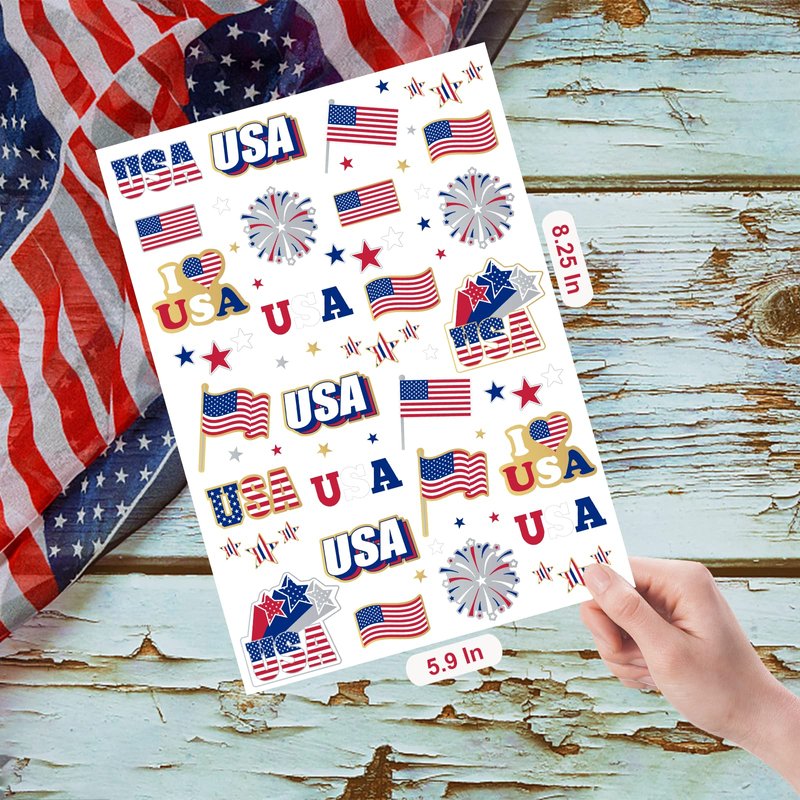 - The Perfect Party Accessory: The temporary tattoos are perfect for Fourth of July party decorations or accessories, party supplies, party favors, DIY decorations and so on. Recommend to apply them to your body and face to take part in the Americana-themed party or meet. Can increase the festive atmosphere! Each sheet measures 8.25 " x 6 " creating the perfect size tattoos!