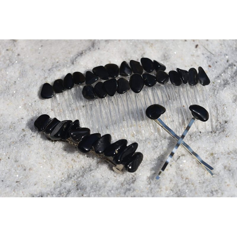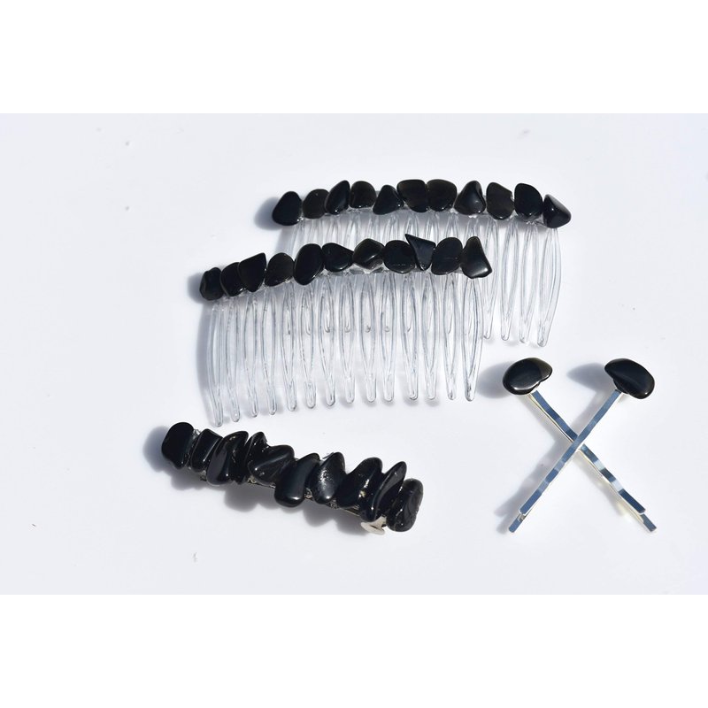 Apache Tears Stone Hair Clip Set - Includes 2 Hair Combs, 1 60 mm French Barrette, 2 Hair Pins