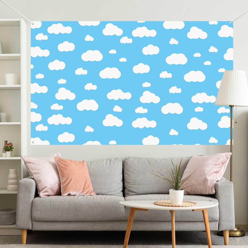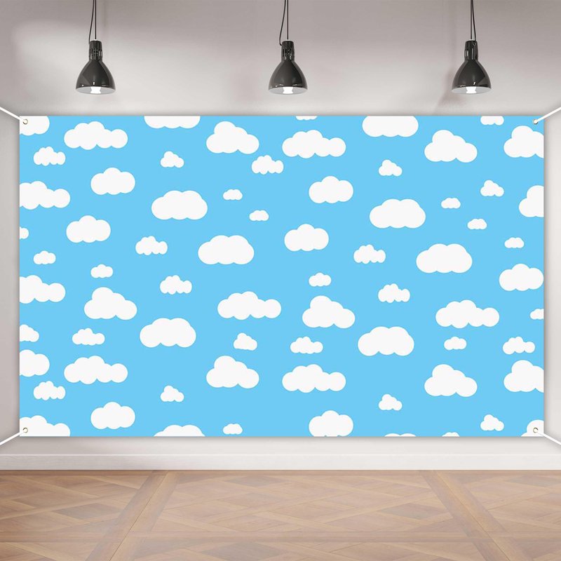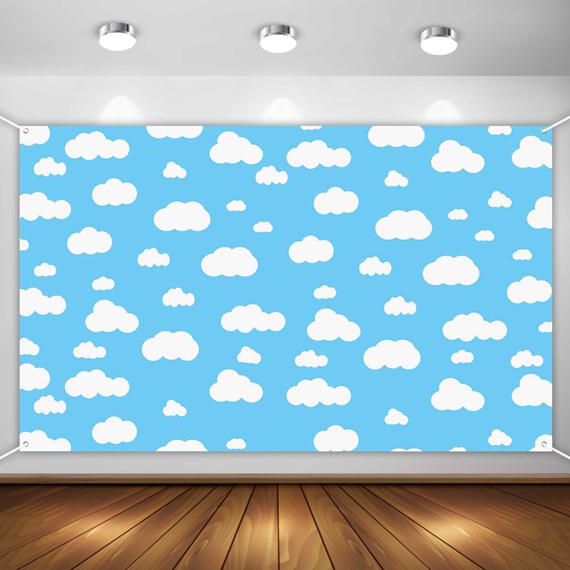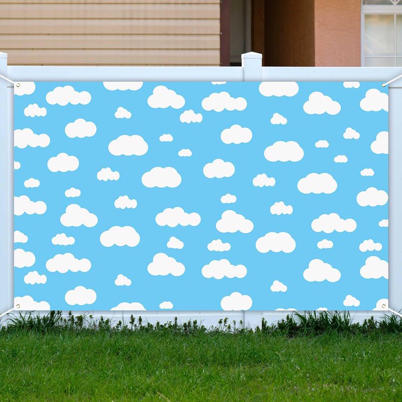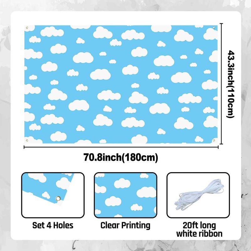 Aperturee Blue Sky White Cloud Banner 70.8 x 43.3 Inch Cartoon Story Natural Landscape Scenery Cute Cloud Design for Baby Showers Nursery Decor and Kids' Birthday Parties