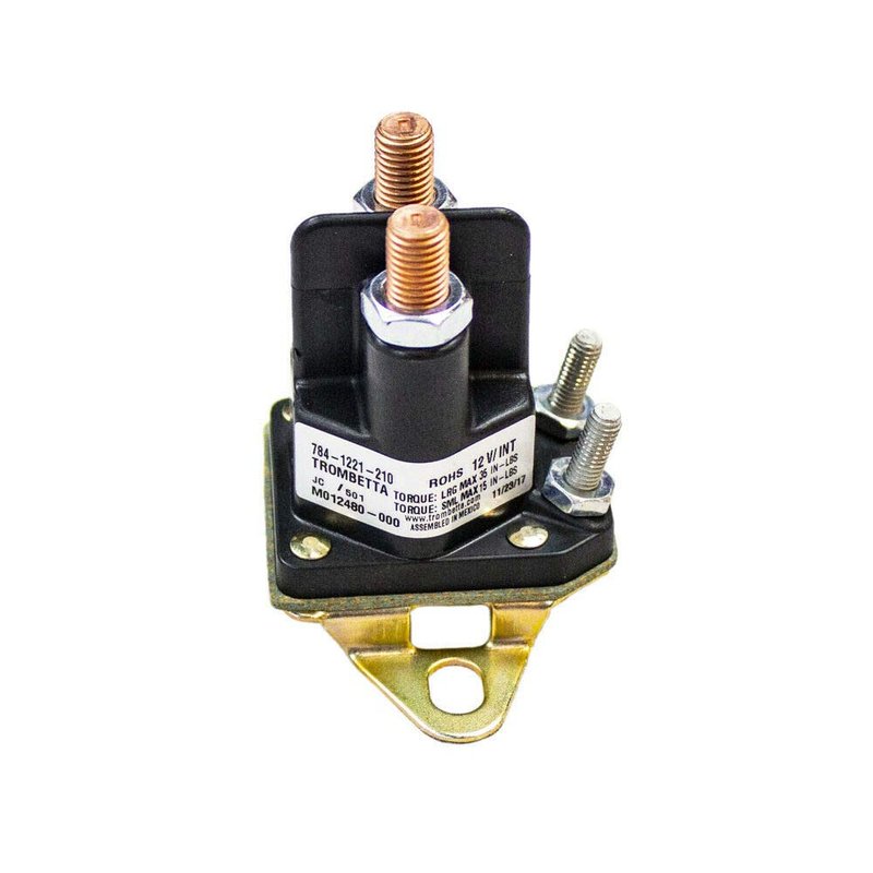 Replaces former part number 1-513075 and E513075 This solenoid links the starter, battery and wiring harness Used on Toro TimeCutter, Titan, GrandStand and Commercial Walk Behind Mowers