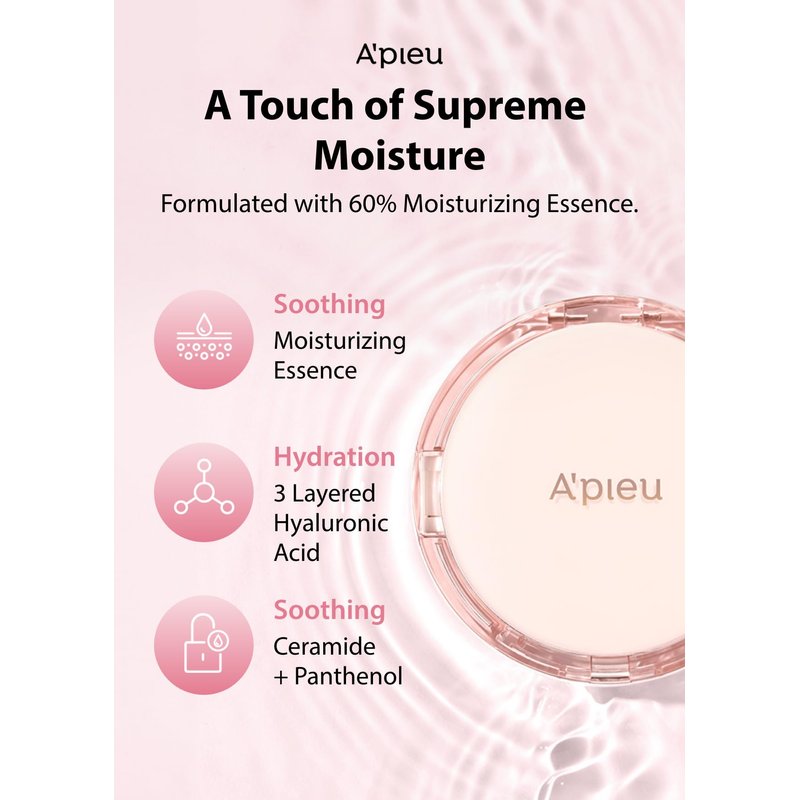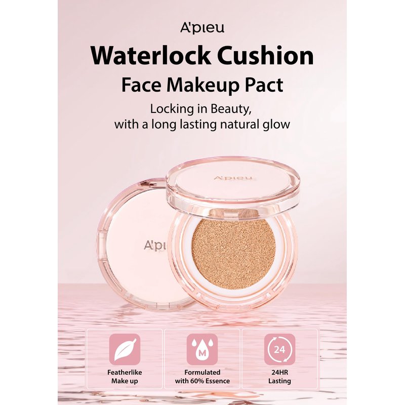 A'PIEU Waterlock Cushion Foundation No.21 Light Beige Semi-Matte Natural Coverage Glow Finish Foundation for Lasting Moisture, 3-Layered Hyaluronic Acid, Paraben-Free