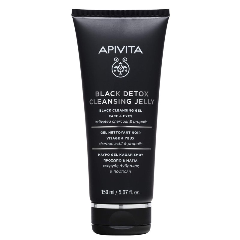 Apivita Black Detox Cleansing Gel - Facial Cleanser & Makeup Remover with Activated Charcoal - Leaves Skin Fresh, Clean and Comfortable - 5.07 Fl Oz