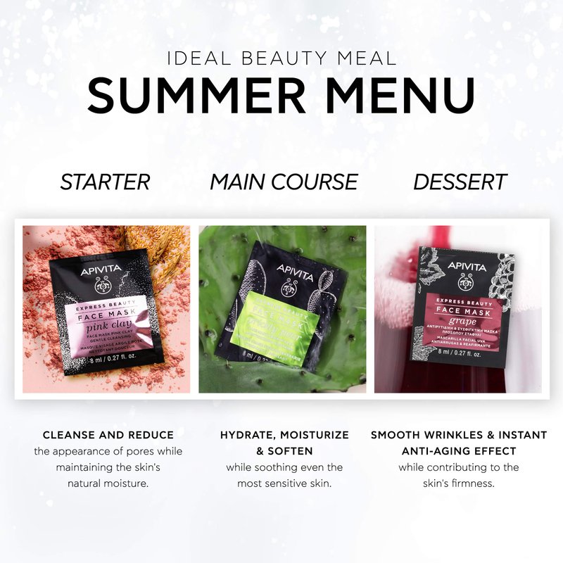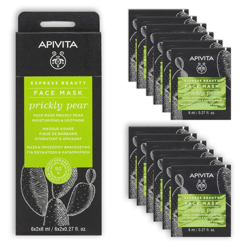 APIVITA Express Beauty Face Mask with Prickly Pear, Aloe & Shea Butter - Deep Moisturizing, Soothing, Hydrating & Rejuvenating Beauty Treatment for All Skin Types - 12 Packettes x 0.27 Fl Oz