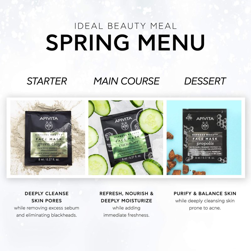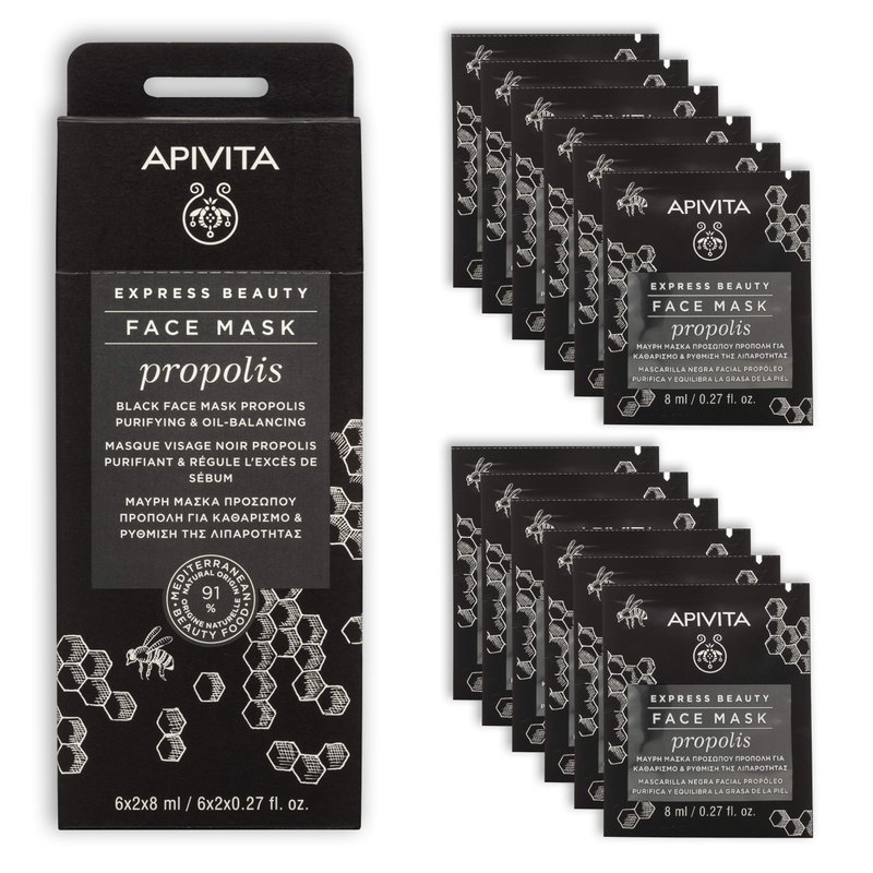 APIVITA Express Beauty Face Mask with Propolis & Charcoal & Green Clay - Purifying, Oil Balancing & Care for Oily to Combination Skin Prone to Acne- 12 Packettes x 0.27 Fl Oz