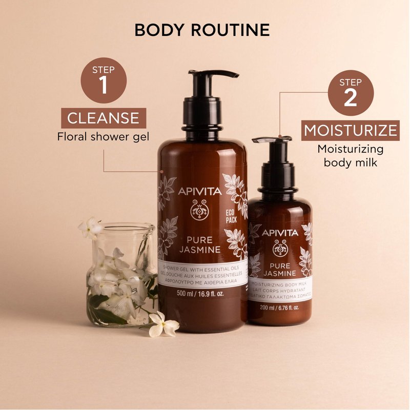 APIVITA Pure Jasmine Showel Gel with Essential Oils, Moisturizing Body Wash Infused with Bioactive Aloe & Propolis Extracts, Gentle Cleansing, Soothes Irritation and Dryness, 16.9 Fl Oz