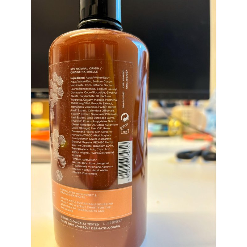 APIVITA Royal Honey Creamy Shower Gel is designed with a unique formula featuring the attributes of thyme honey, ideal for dry skin. It gently cleanses the skin without causing dryness, while leaving behind a silky sensation. The special scent of thyme honey promotes relaxation and rejuvenation. This shower gel is a mild cleanser without sulphates, maintaining the skin's natural moisture with mild cleansing agents, propolis extract, and soap. Enriched with thyme honey and panthenol, it hydrates the skin, leaving it soft and supple. Olive and almond oil in our shower gel nourish the skin thoroughly. Calendula is known for its soothing properties and for preventing irritation. Organic orange and rose essential oils provide additional moisturizing and antioxidant properties. The unique scent with notes of thyme honey lightly perfumes the skin. Water in this composition has been replaced by an antioxidant witch hazel infusion.