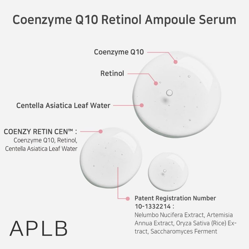APLB Coenzyme Q10 Retinol Ampoule Serum | COENZY RETIN CEN™ 44.1% 1.35 FL.OZ/Korean Skincare, Wrinkle Care, Hydration, Exfoliant, Revitalize for gentle and improve skin texture