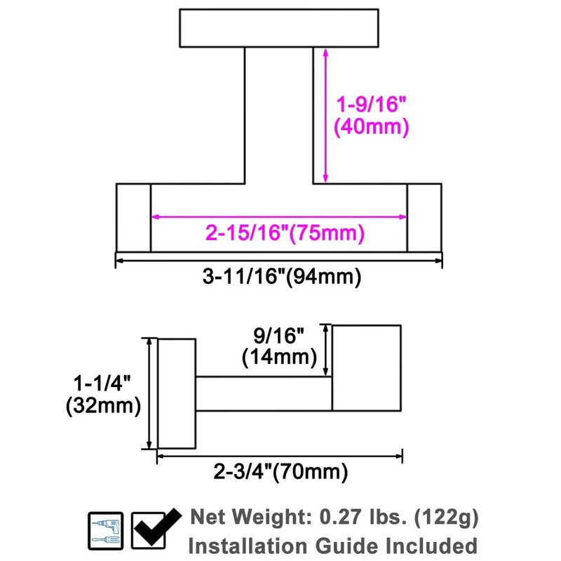 APLusee Double Robe Towel Hook, Stainless Steel Square Dual Coat Hook, Utility Bath Kitchen Storage Hanger Holder, Matte Black