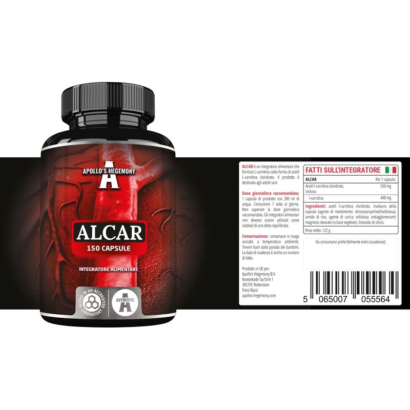 Apollo's Hegemony Acetyl L-Carnitine HCL 550 mg, ALCAR 150 Vegan Capsules, 5 Months Supply, High Strength Amino Acid Supplement, Supports Cognitive Functions & Energy Levels