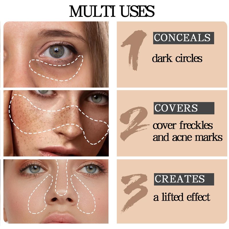 - 【Color Correcting Concealer】:An easy-to-use full coverage cream concealer that hides skin imperfections,blemishes& under-eye circles and evens out overall skin tone.