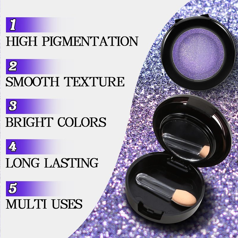 Apooliy Single Glitter Eyeshadow Powder,Highly Pigmented Cream Shimmer Eye shadow,Waterproof Long Wear Purple Pressde Eyeshadow