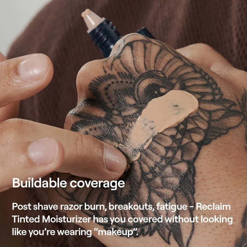 - TINTED MOISTURIZER FOR MEN; The ultimate 2 in 1, Reclaim Tinted Moisturizer blends easily into the skin to even out skin tone and provide a natural matte finish with buildable coverage while hydrating and detoxing the skin. Just like a bb cream for men, our tinted moisturizer is buildable so you can get the light coverage or medium coverage you desire.