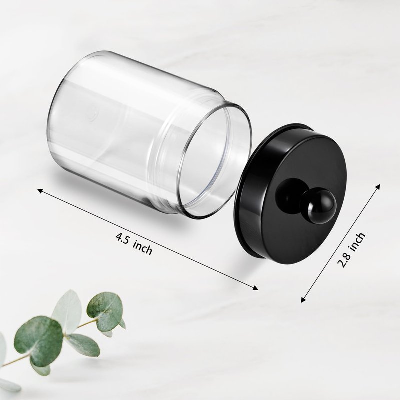 - ✅DURABLE & EASY TO USE:The cute 8 oz. apothecary jar is made of durable,food-grade plastic,BPA-Free,glass-like, more drop-resistant than glass. The plastic lids fits well, easy to open. The tops come off and don't screw on,which is a good thing so you can just grab a Q-Tip or cotton ball with one hand.