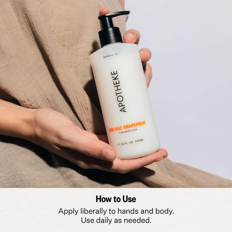- Nourishing Hand & Body Lotion: Experience soft, hydrated skin with Sea Salt Grapefruit lotion, a nourishing and fast-absorbing moisturizer from APOTHEKE. Made with plant-based ingredients that hydrate while lightly scenting the skin. Each bottle is 10 fl oz and measures 2.5 x 6.5 inches.