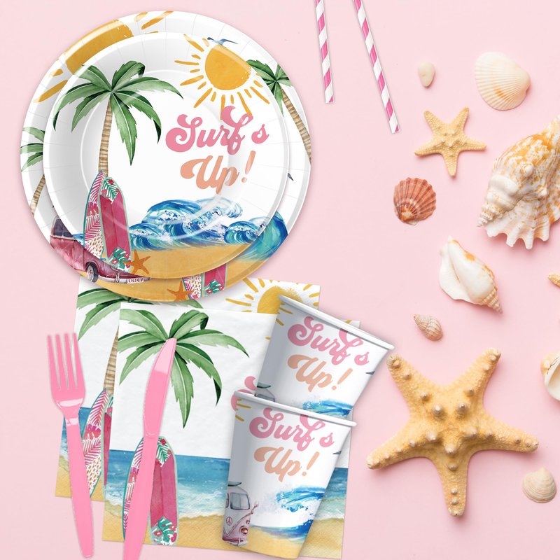 Girl Summer Beach Surfing Plates and Napkins Party Decorations Supplies For Birthday & Baby Shower Includes: