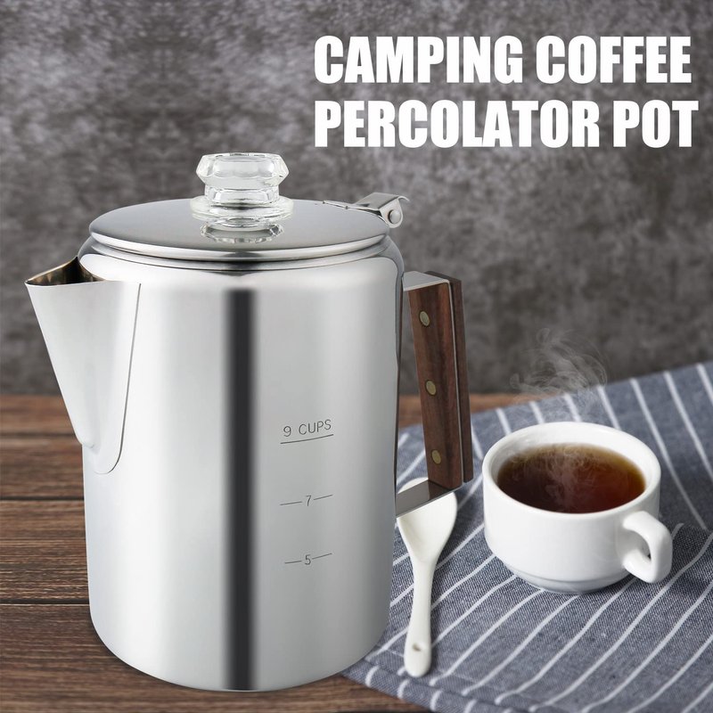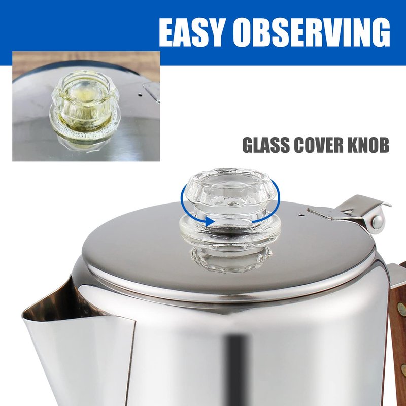 APOXCON Coffee Percolator, Camping Coffee Pot 9 Cups Stainless Steel Coffee Maker with Clear Top Glass Knob, Percolator Coffee Pot for Campfire or Stovetop Coffee Making Outdoor Traveling Fast Brew