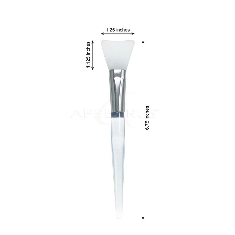 - 6-piece set includes: (1) Large Bowl: 4.75" dia x 3.25" tall (550 ml); (1) Medium mask brush with synthetic hair 6.75" L; (1) Curved head silicone mask brush 6.75" L; (1) Silicone mask fan brush 5.75" L; (1) Medium Plastic Mixing Spatula 6" L; (1) Large Plastic Mixing Spatula 8" L