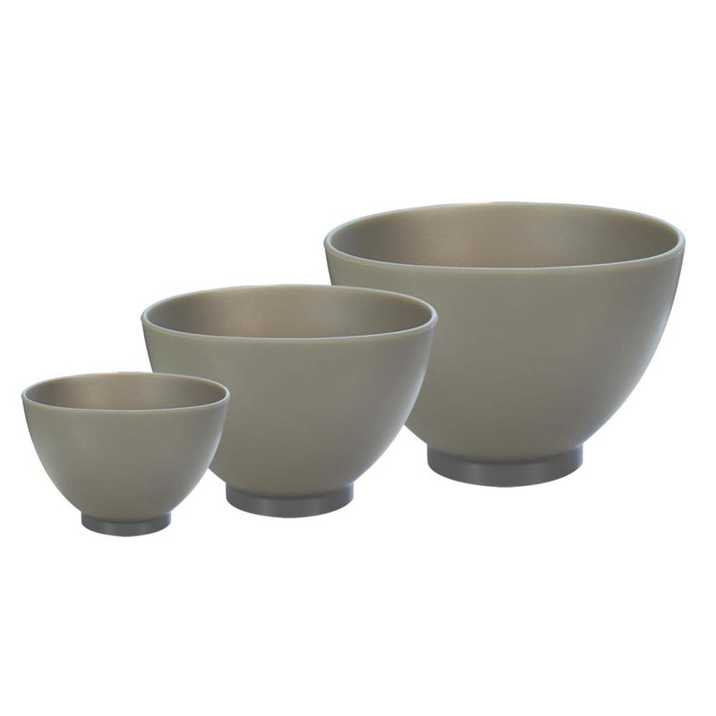 - 3-piece set includes: (1) Small Bowl: 3" dia. x 2" tall (150ml); (1) Medium Bowl: 4" dia. x 2.5" tall (365ml); (1) Large Bowl: 4.75" dia x 3.25" tall (550ml)