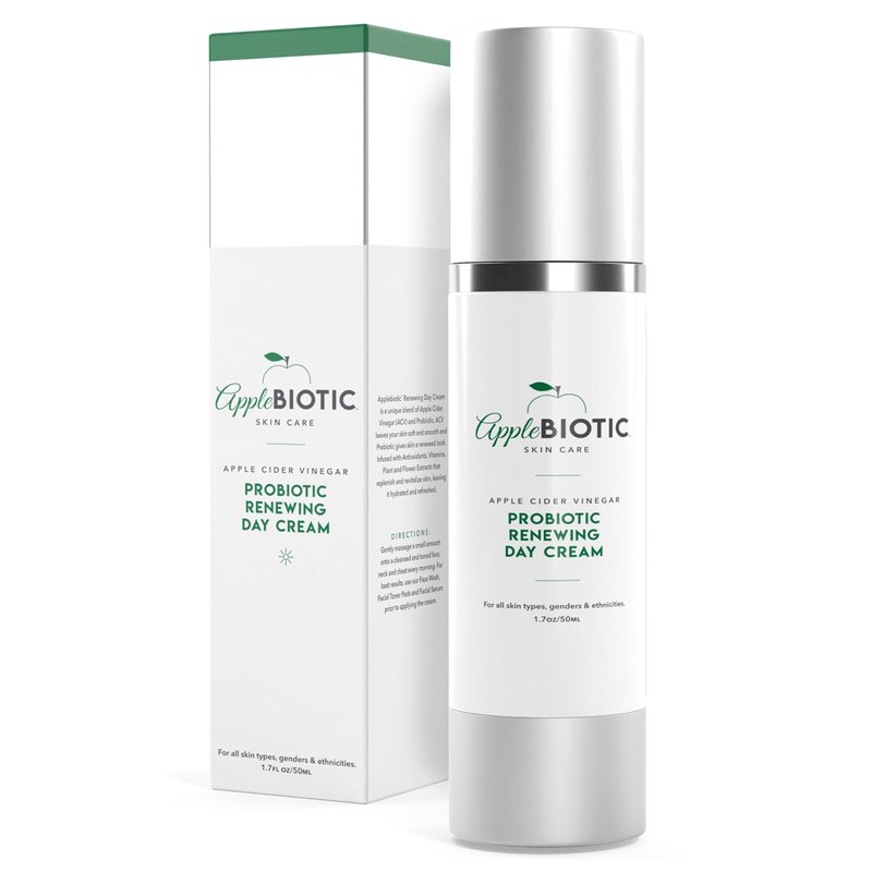 We don't necessarily mean to brag, but this here ACV facial moisturizer is The face cream of the future. Fortified with the indelible powers of probiotic extracts, AppleBiotic's Apple Cider Vinegar Skincare has the keen ability to uncover the true beauty of any skin type. Up your game with a healthy skincare regimen inspired by the bounty of nature. Apply the healing face lotion day & night to help with spots, fade scarring & moisturize for a silky smooth complexion. 100% RAW UNFILTERED APPLE CIDER VINEGAR: Gently Exfoliates Dead Skin, Balances pH, Fades Acne Scars, Dark Spots, Age Spots, Sun Damage & Other Imperfections NATURAL ENZYMES & POWERFUL PROBIOTIC EXTRACTS: Invigorate & Stimulate to Awaken Skin Plagued by Fatigue - Penetrate Deep to Boost Cellular Renewal & Turnover HEALING PROPERTIES OF NATURAL ALOE VERA: Vitamins A, C, E & B12 Naturally Firm, Nourish & Minimize Pores for a Refined Finish – Folic Acid Strengthens Skin GREEN TEA TONIC SOFTENS & SMOOTHS SKIN: Replenishes Skin with Essential Nutrients to Uncover a Softer, Smoother, More Supple Texture & Bright Skin Glow SKIN SOOTHING CHAMOMILE EXTRACT ELIXIR: Calms Irritated Skin to Reduce Red Tones & Promote Evenness + Eliminates Surface Dirt & Grime that Typically Causes Acne We couldn't be more proud of our made in USA apple cider vinegar skin care line. Designed for a woman or man's daily skincare routine, this anti-wrinkle facial cream changes the game. It's hydrating, tightening, firming, brightening, soothing, energizing, clarifying, moisturizing & safe enough for sensitive skin. Reveal Gorgeous Skin and Find Natural Beauty From Within. Save Face & Shop AppleBiotic Skincare Solutions! We guarantee you won't be disappointed.