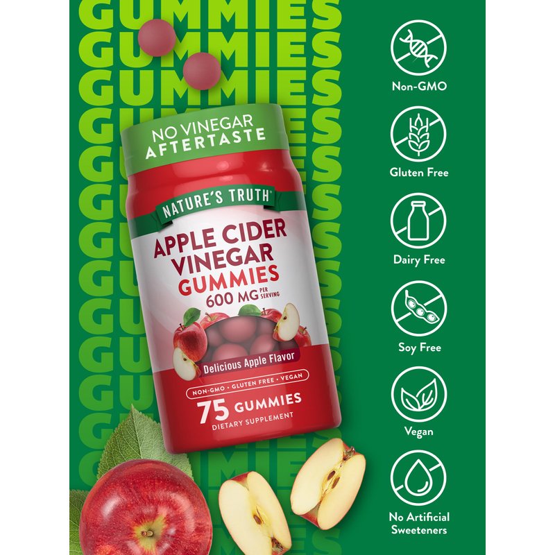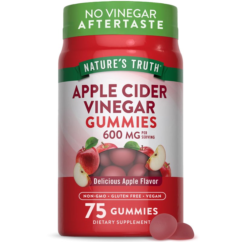 Apple Cider Vinegar Gummies | 600 mg | 75 Gummies | Apple Flavor | Vegan, Non-GMO, Gluten Free Supplement | by Nature's Truth