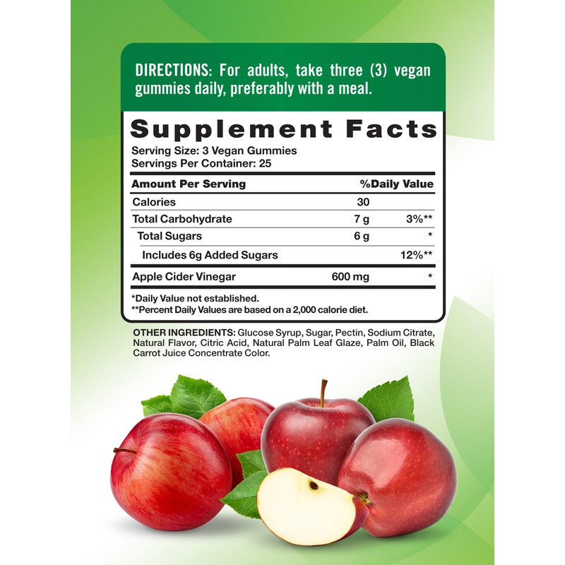 - NO VINEGAR AFTERTASTE: Delicious apple flavored gummies provide 600 mg of Apple Cider Vinegar per serving