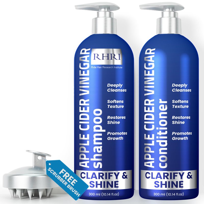 Apple Cider Vinegar Shampoo and Conditioner Set | Deep Cleansing, Frizz Control, Shine Restoration & Scalp Care | Clarifying Shampoo for All Hair Types | 10.14 fl.oz (Pack of 2)