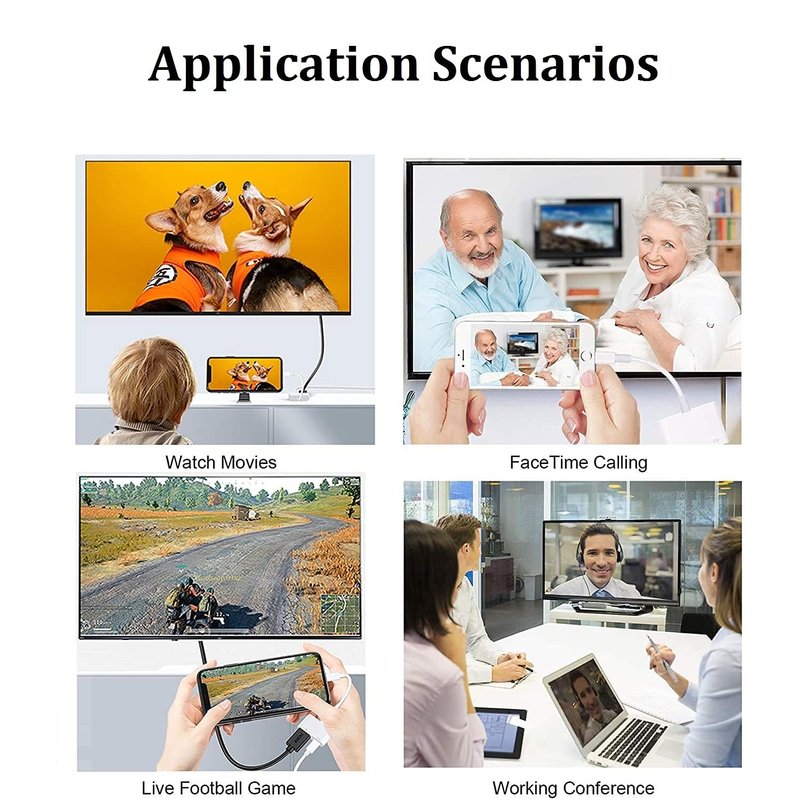 - 【1080P iPhone to HDMI Adapter for TV】 The Lightning to HDMI Adapter Cable supports mirroring of what is displayed on your device screen - including apps, presentations, websites, slideshows and more - to your HDMI-equipped TV, display, projector or other compatible display in up to 1080P HD.