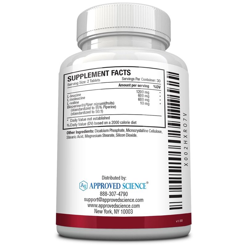 Approved Science BCAA Supplement - 60 Tablets - 2400mg - Increase Performance and Enhance Muscle Development - L-Leucine, L-Isoleucine, L-Valine - Made in USA, Non-GMO