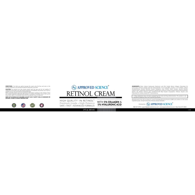 Approved Science Retinol Cream with 1% Retinol, 5% Collagen, and 5% Hyaluronic Acid - Revitalize, Brighten, Firm, and Plump Skin - 6 fl. oz. (180 ml)
