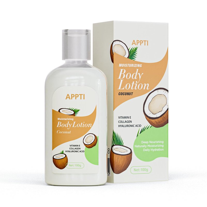 APPTI Moisturizing Body Lotion, Body Smoothing Moisture Cream, Hand and Body Moisturizer for All Skin Types, Coconut