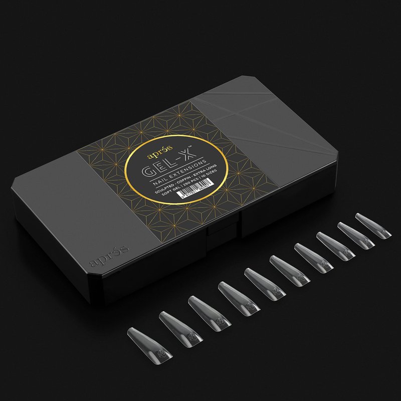 Apres Gel-X Tips Nail Extensions Sculpted Coffin Extra Long Soft Gel | 250 Pcs | 10 Sizes