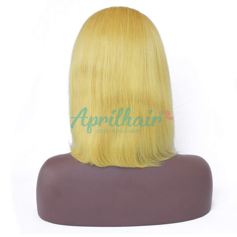 Aprilhair Pre-plucked Grey Bob Lace Front Wigs Straight Glueless 130% Density Short Cut Brazilian Virgin Human Hair With Baby Hair Full And Thick Free Part (10 Inch, Yellow color)