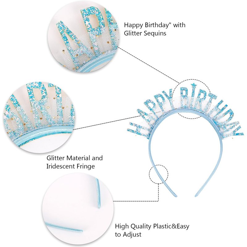 - Happy Birthday Decorations: The birthday set includes headband and sash. Infused with gleaming sequins and adorned with glittering letters spelling out 'Happy Birthday', this birthday tiara captures light to sparkle brilliantly, radiating birthday joy and make your birthday extra special