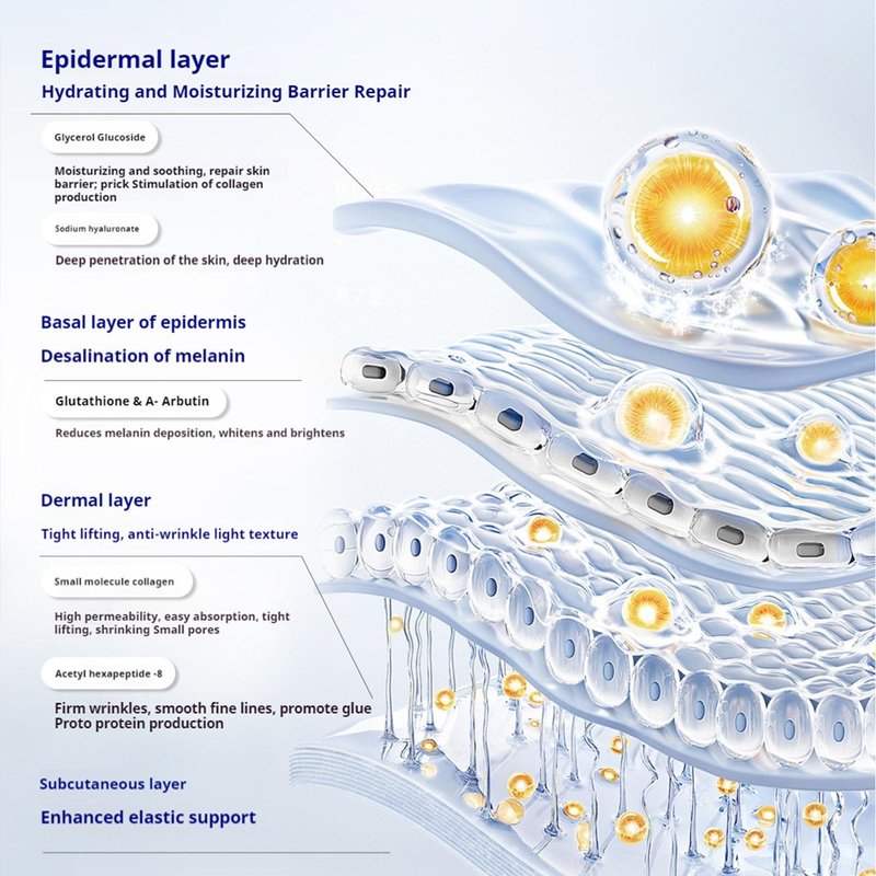- [Deep Collagen Anti Wrinkle Lifting Mask]: This collagen face mask is enriched with a high concentration of low molecular collagen, which can effectively replenish the collagen needed by the skin, restoring the skin's elasticity and luster.