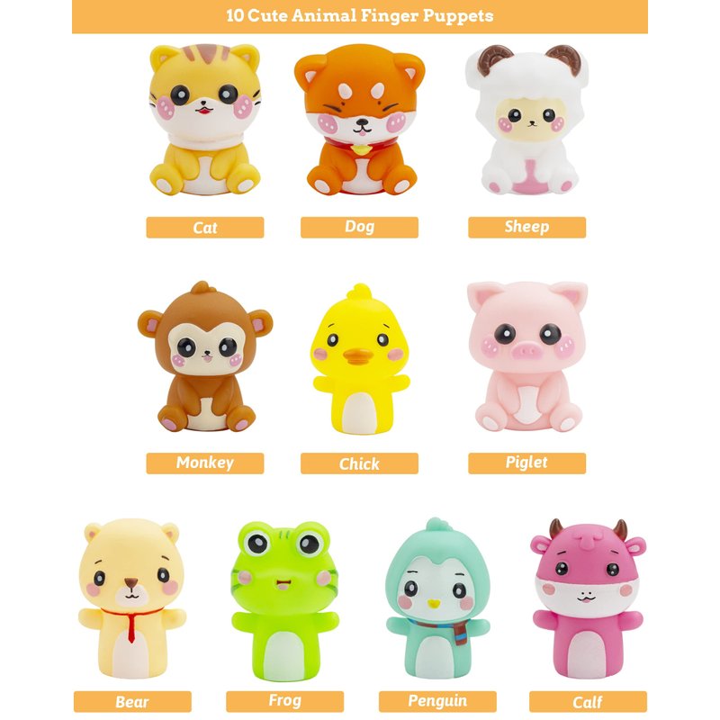 - Finger puppet set includes 10 animals finger puppets. Finger puppet size suitable for children and adults.