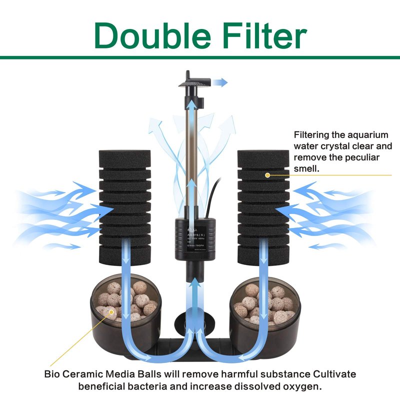 3.Make sure the double sponge filter oriented vertically, otherwise the pipe will be blocked by the ceramic pearls.