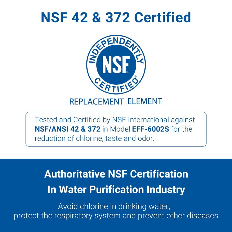 - 100% safe materials: AQUA CREST adopted BPA-free and food-grade materials in making this refrigerator filter. This claim is verified and backed by the NSF 372 certification that declares this filter housing lead-free.