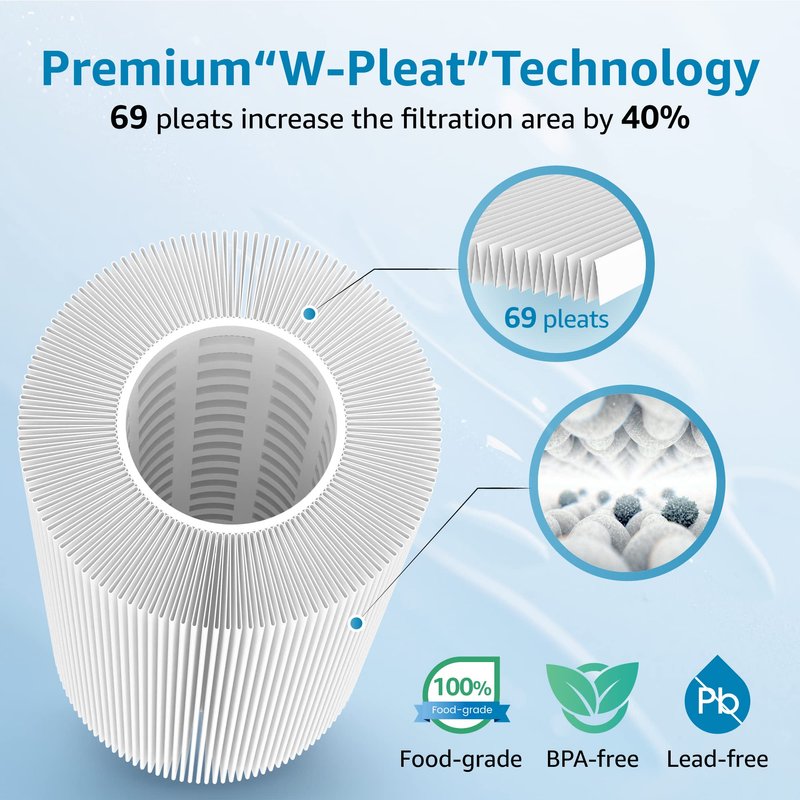 The pleated structure has a long-lasting service life, and you can enjoy fresh water by replacing your filter every 3-6 months or 30,000 gallons. As a result, you needn’t replace your filter frequently and you can save more money and time.