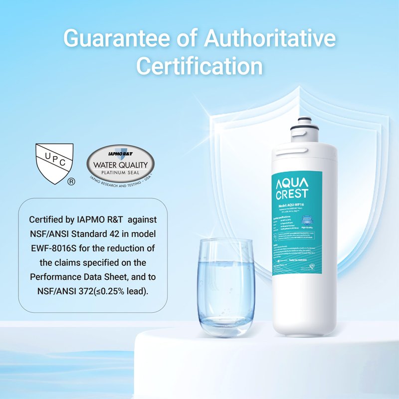 - πππ° ππ©π π«πππ&ππ₯ππ«π-ππ¨π§π πππ«π―π’ππ ππ’ππ: After advanced upgrade, the model number is changed from AQU-8016 into AQU-WF16. When used with municipal water, each filter has a maximum service life of 11,000 gallons.