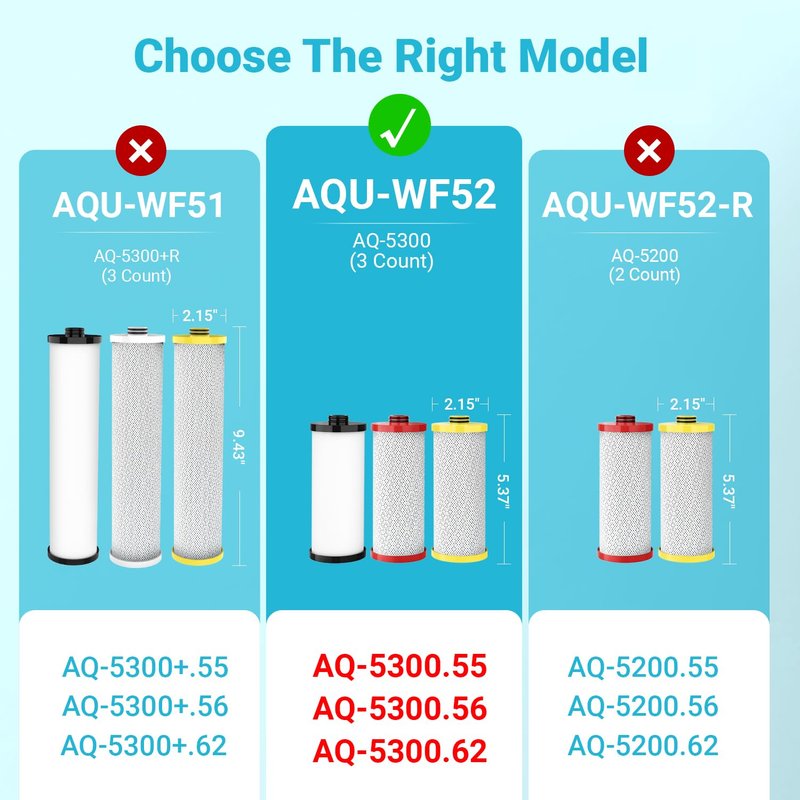 AQUA CREST WF52 Replacement for Aquasana® Under Sink Water Filter AQ-5300R, Aquasana® Filter Replacement, 600 Gallons, Pure, Tasty Water, 3 Count