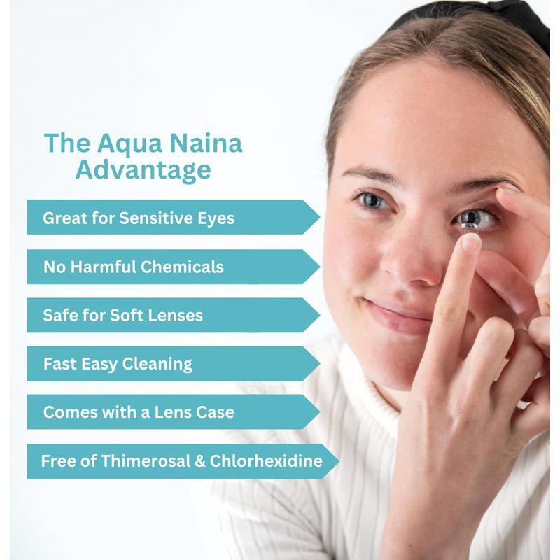 - FOR SENSITIVE EYES: Designed to remove protein deposits daily contains no chlorhexidine, no thimerosal, and no other mercury-containing ingredients to which some people are sensitive. The Aqua Naina contact solution ensures that your lenses remain clean and comfortable for extended wear.