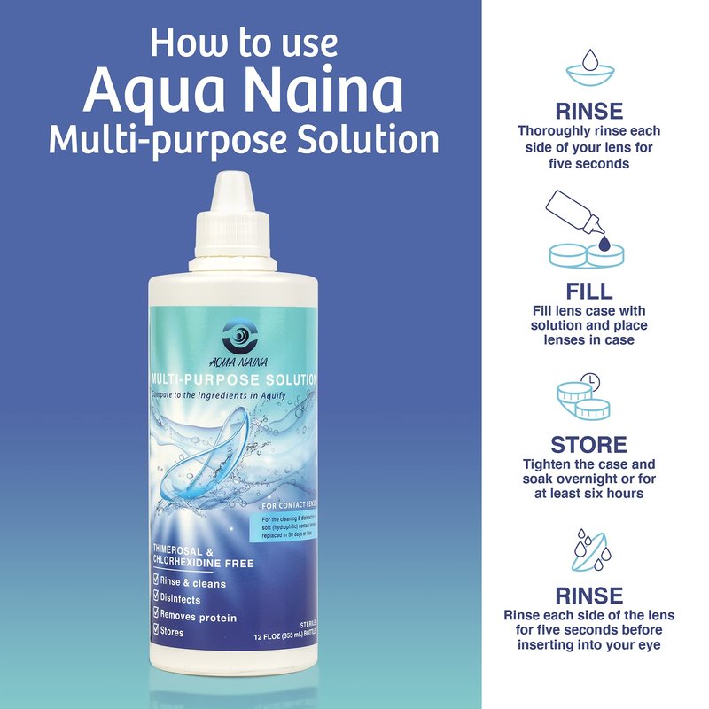 With our 100% Satisfaction, no questions asked, money-back guarantee, you can shop with confidence, making Aqua Naina multi-purpose lens solution a great choice.