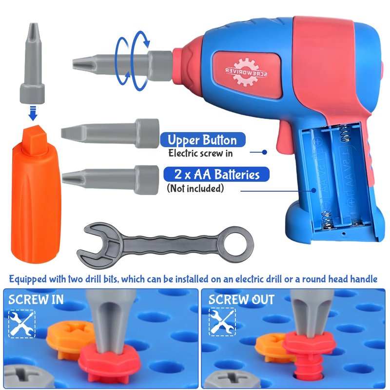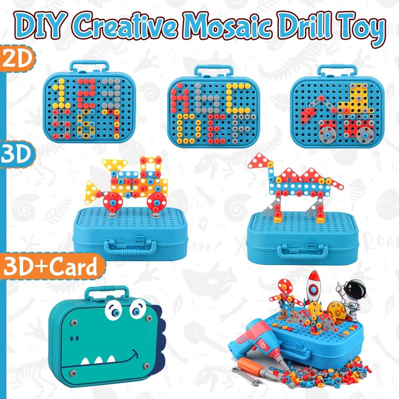 - Endless Fun & Learning:With this drill toy, kids can embark on a journey of creativity! They'll screw and unscrew ABS screws and mosaic boards into the holes on the box to create various exciting models - cars, animals, robots, and beyond! This hands-on experience fosters STEM development and engineering concepts, while refining fine motor skills, color cognition, teamwork, artistic perception, sensory and cognitive abilities, practical skills, imagination, and creativity. A playtime that's both educational and enjoyable