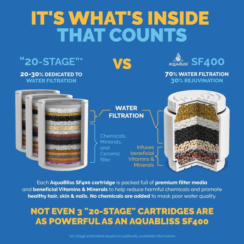 AquaBliss HD Revitalizing Shower Filter Replacement Cartridge For SF400 & SF500-2x Vitamin C + Minerals for Silky Hair, Glowing Skin, Strong Nails. 1-Pack (SFC400)