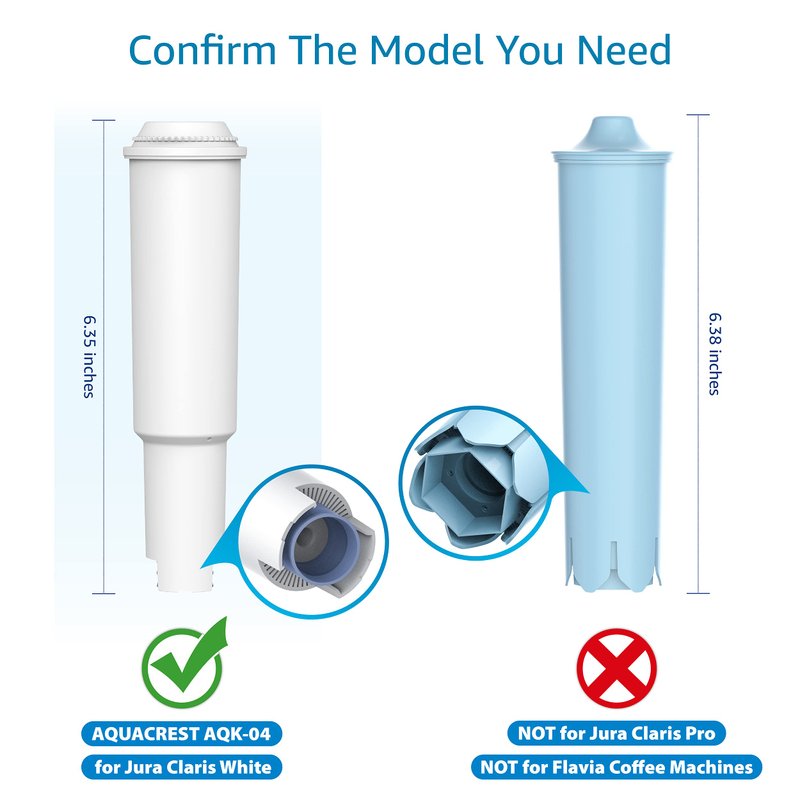 - 💧Note: This is the white filter replacement for Jura Clearyl White, make sure your original filter is “white” in color. NOT Jura Claris Pro! NOT for Flavia coffee machines! AquaCrest is an independent brand. This filter is not an original product.