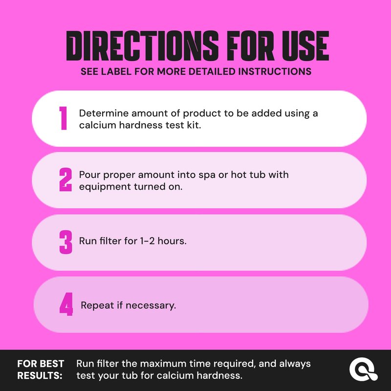 Our hot tub calcium increaser should be paired with a spa stain & scale control chemical to use as a hot tub water softener. Without a spa scale control for hot tubs, you will have trouble balancing your water calcium levels. When you need a spa water hardener, we have the hardness increaser for hot tub owners to get the job done.