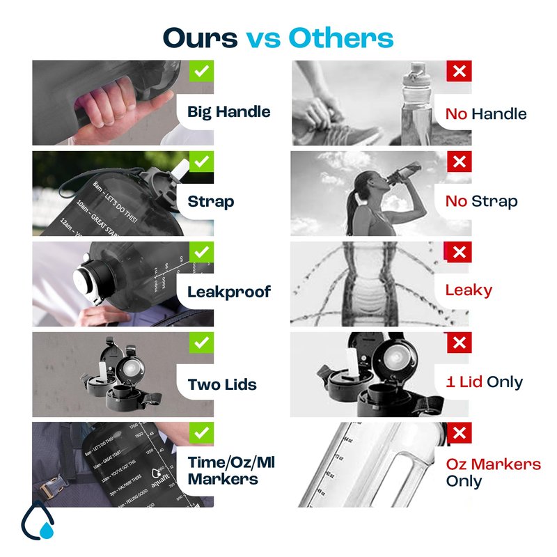 - Track how much you drink - Our half gallon water bottles come with clear time markers + motivational quotes on the side so you can see your daily water intake and stay on track to meet your health and fitness goals.