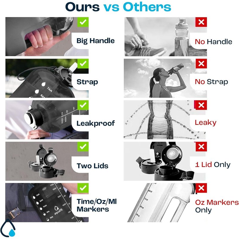 - Track how much you drink - Our half gallon water bottles come with clear time markers on the side so you can see your daily water intake and stay on track to meet your health and fitness goals.