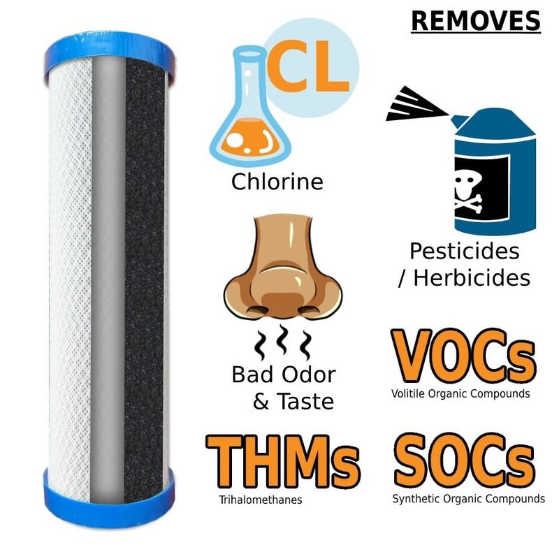 The AquaFX 10 inch HIGH CAPACITY Carbon Block Filter 12,000 Gallon Chlorine Removal 0.02PPM. This is an excellent and affordable upgrade from the AquaFX standard carbon block cartridge or other brands. The ultra high capacity carbon will outlast a traditional carbon by 4 times, improving water quality and saving money in the long run!